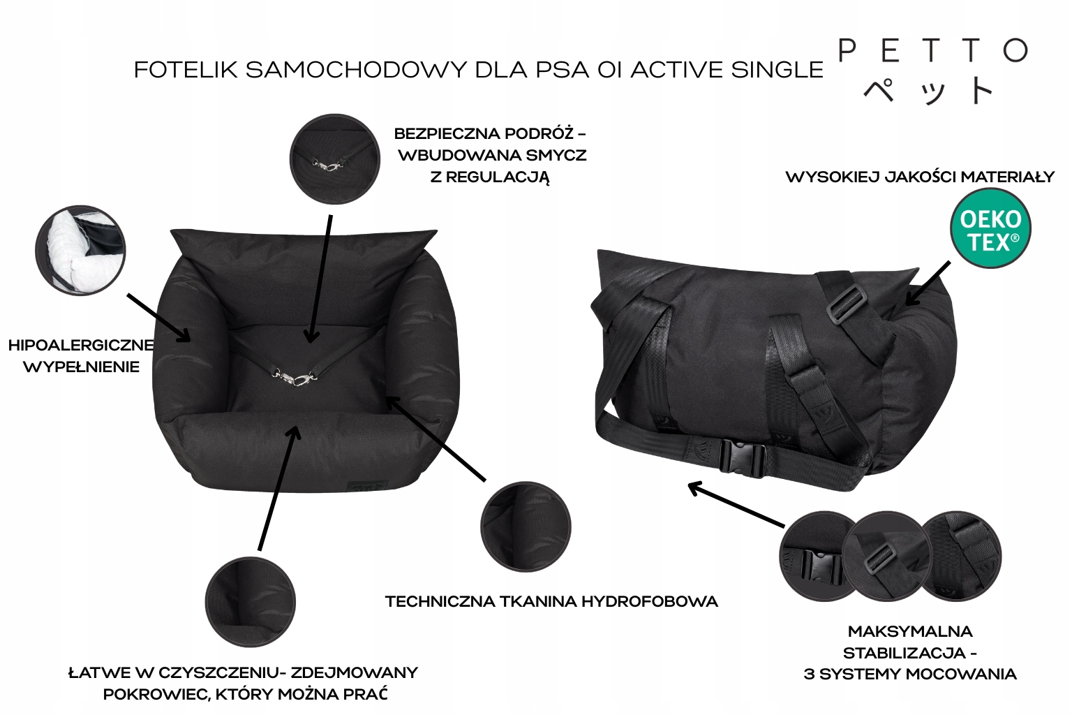 Автокресло PETTO, сиденье для собаки Oi Active, черное, одинарное