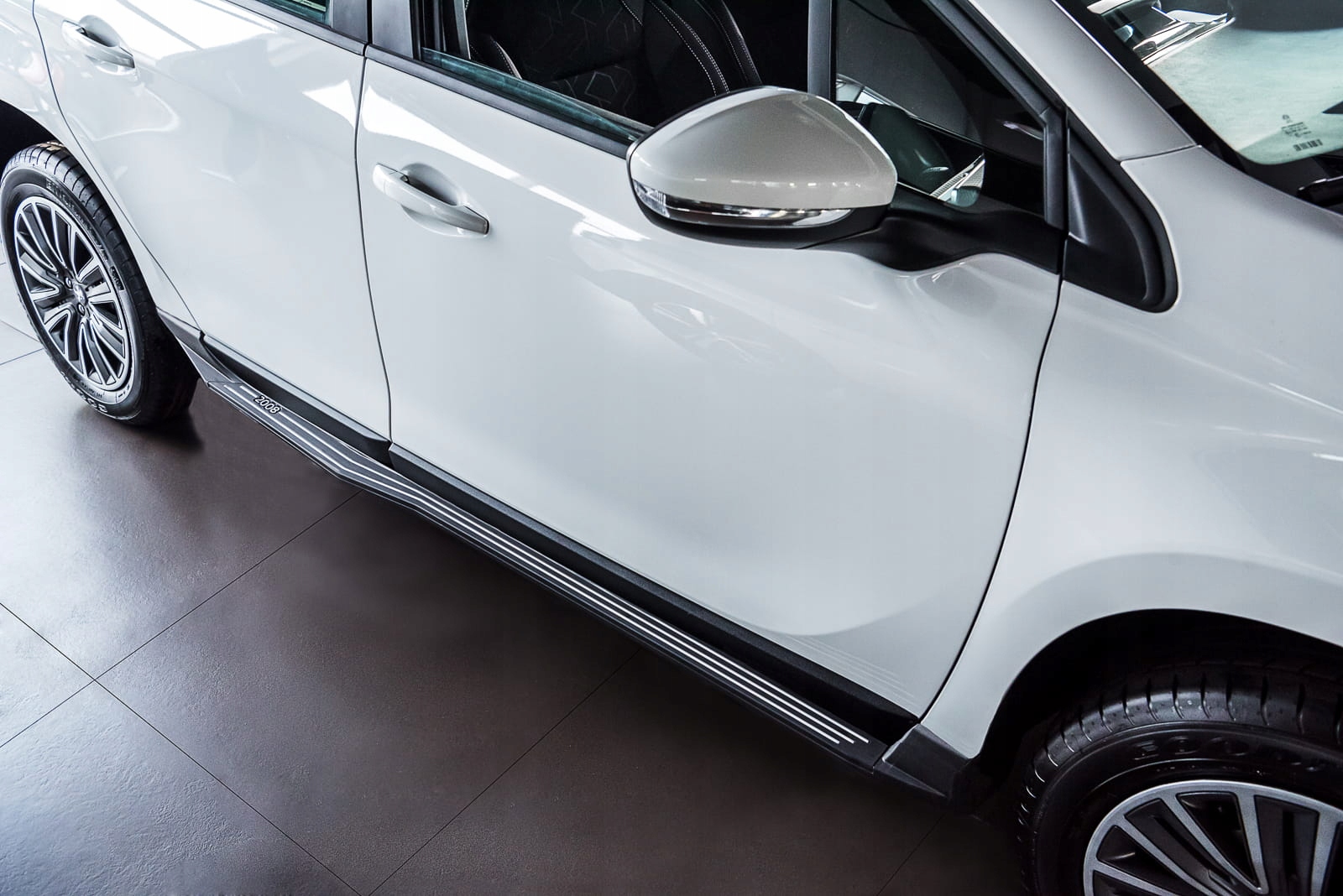 Боковые подножки созданы для повышения комфорта при посадке и выходе из автомобиля, а также для обеспечения более удобного рабочего положения при размещении грузов на крыше автомобиля. Пороги не только обеспечивают комфорт, но и повышают безопасность, что особенно важно для детей и пожилых людей.