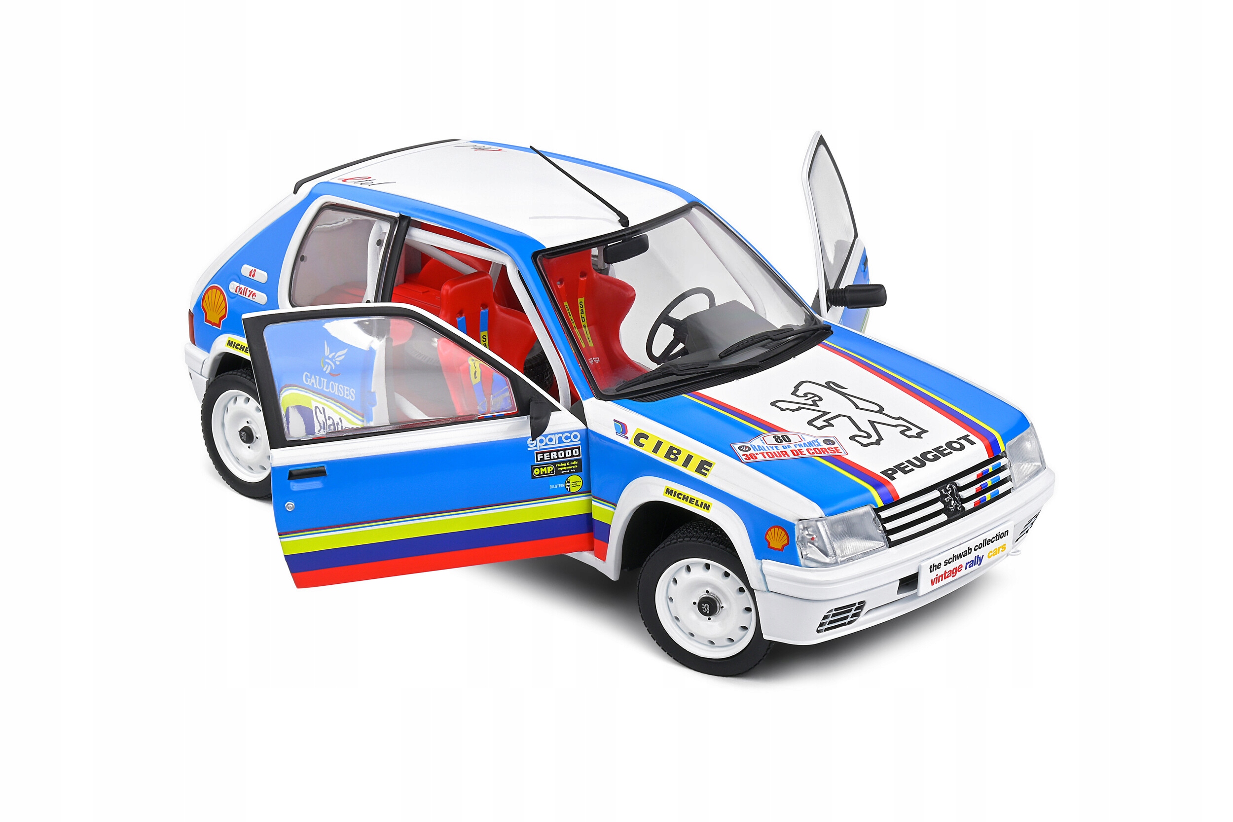 Коллекционная металлическая модель автомобиля Peugeot 205 Rallye Rally 1.9L MK1 The Schwab Collection Tour de Corse 1990 года выпуска в масштабе 1/18 от Solido