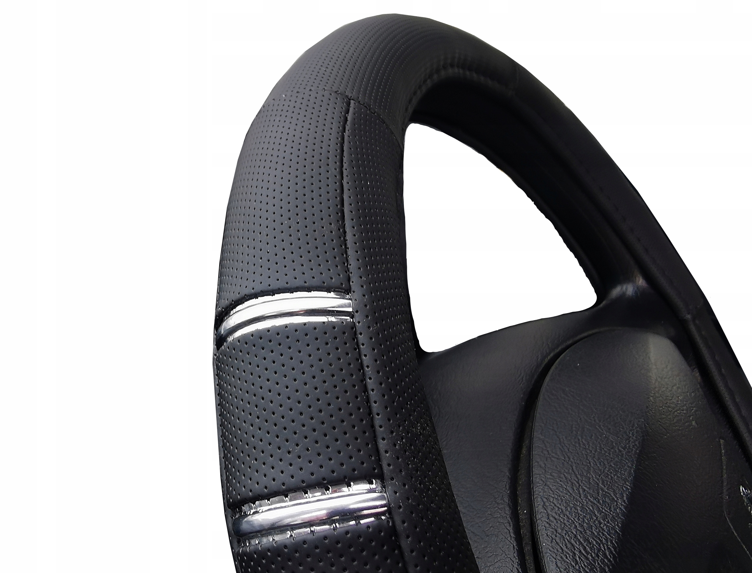 Чехол на руль без запаха из перфорированной эко-кожи в сочетании с хромированными элементами, подходит для моделей с внешним диаметром руля: от 37см. до 38,5 см.