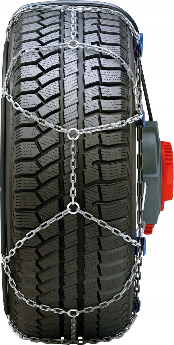 Инновационные цепи противоскольжения, предназначенные для заднеприводных автомобилей (но могут использоваться и на передней оси), с небольшим пространством в колесных арках. Быстрая и простая сборка; инновационный натяжитель показывает в окошке, правильно ли установлена и полностью натянута цепь.