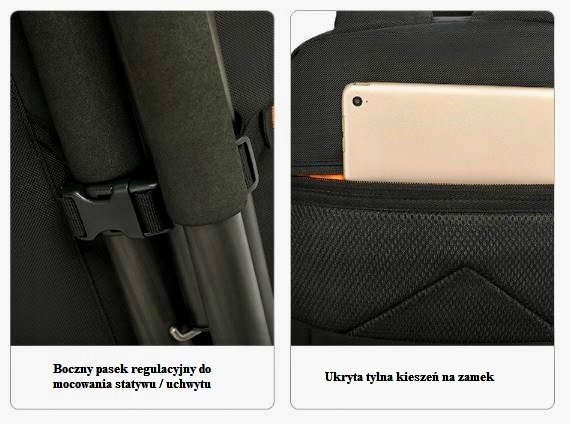 Эластичный карман + стабилизирующий ремень позволяют удобно носить штатив или монопод.