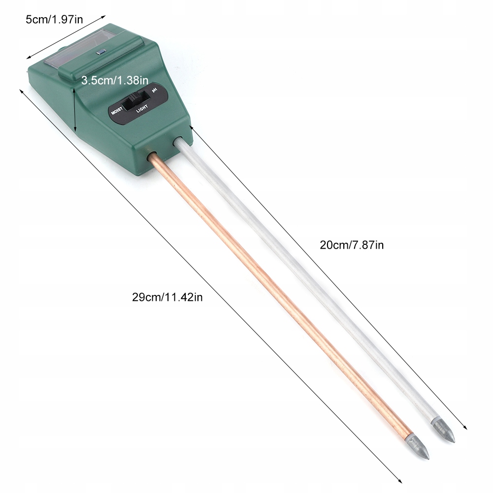Тестер почвы 2,3 в 1: 1. Измеритель влажности — сообщит, когда поливать, чтобы контролировать влажность. Вы никогда не будете поливать/поливать свои растения. 2. PH-тестер — помогает контролировать уровень pH в вашей почве, кислая или щелочная среда подходит для ваших растений. 3. Датчик солнечного света — помогает определить, получает ли ваше растение достаточно света.