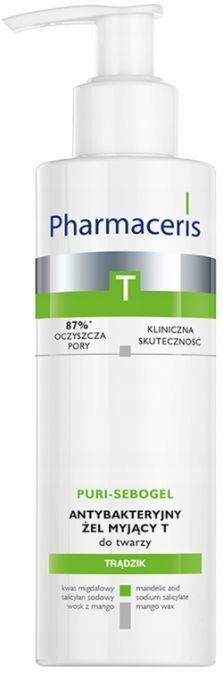 Pharmaceris T Puri-Sebogel, антибактериальный очищающий гель для лица Т, подходящий для кожи всех возрастов. Гель основан на чрезвычайно мягких очищающих ингредиентах и не разрушает естественный защитный барьер кожи. Открывает поры, эффективно удаляет загрязнения и излишки кожного сала, не раздражая и не пересушивая кожу. Обладает антибактериальными свойствами, обеспечивая надлежащую гигиену и баланс бактериальной флоры кожи, склонной к акне. Очень толерантный препарат, не содержит мыла.