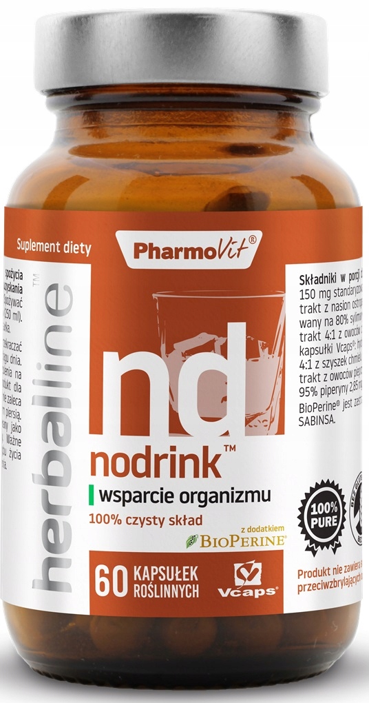 Nodrink™ — это уникальная композиция ингредиентов, поддерживающая организм людей, отказавшихся от употребления алкоголя. Это синергетическая комбинация растительных экстрактов, заключенная в растительную капсулу Vcaps®. Расторопша поддерживает здоровье и детоксикацию печени, а также поддерживает пищеварение и очищение организма. Лимонник обладает адаптогенными свойствами, поддерживает устойчивость организма к стрессу и способствует поддержанию физического и психического благополучия. Хмель обыкновенный оказывает успокаивающее действие на нервную систему, помогает при затрудненном засыпании, а также обладает антиоксидантными свойствами. Композиция обогащена экстрактом черного перца BioPerine®. Черный перец способствует пищеварению и усвоению питательных веществ, а также повышает эффективность растительных ингредиентов.