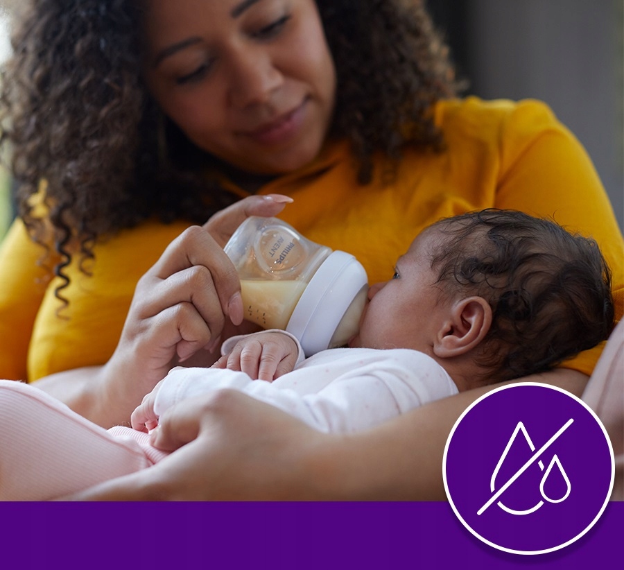 Отверстие соски спроектировано таким образом, что молоко вытекает только тогда, когда ребенок сосет. Так вы можете быть уверены, что молоко никуда не прольется.