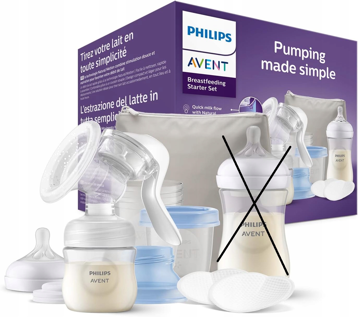 - бутылочка 125 мл с соской для детей от 0 месяцев и старше, одноразовые накладки для груди, изоляционный чехол, уплотнительный диск, крышка-крышка. , молокоотсос с ручкой, контейнерами для хранения и 1 адаптером.