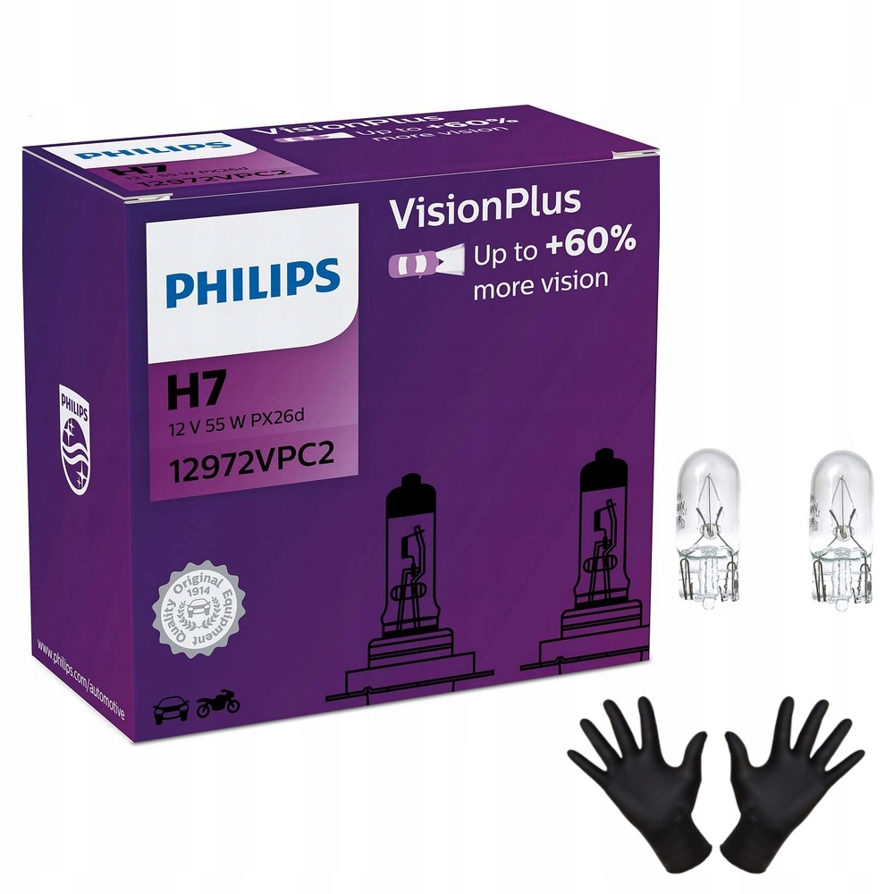 PHILIPS H7 VISIONPLUS +60% 12V 55W 2 шт + халявы