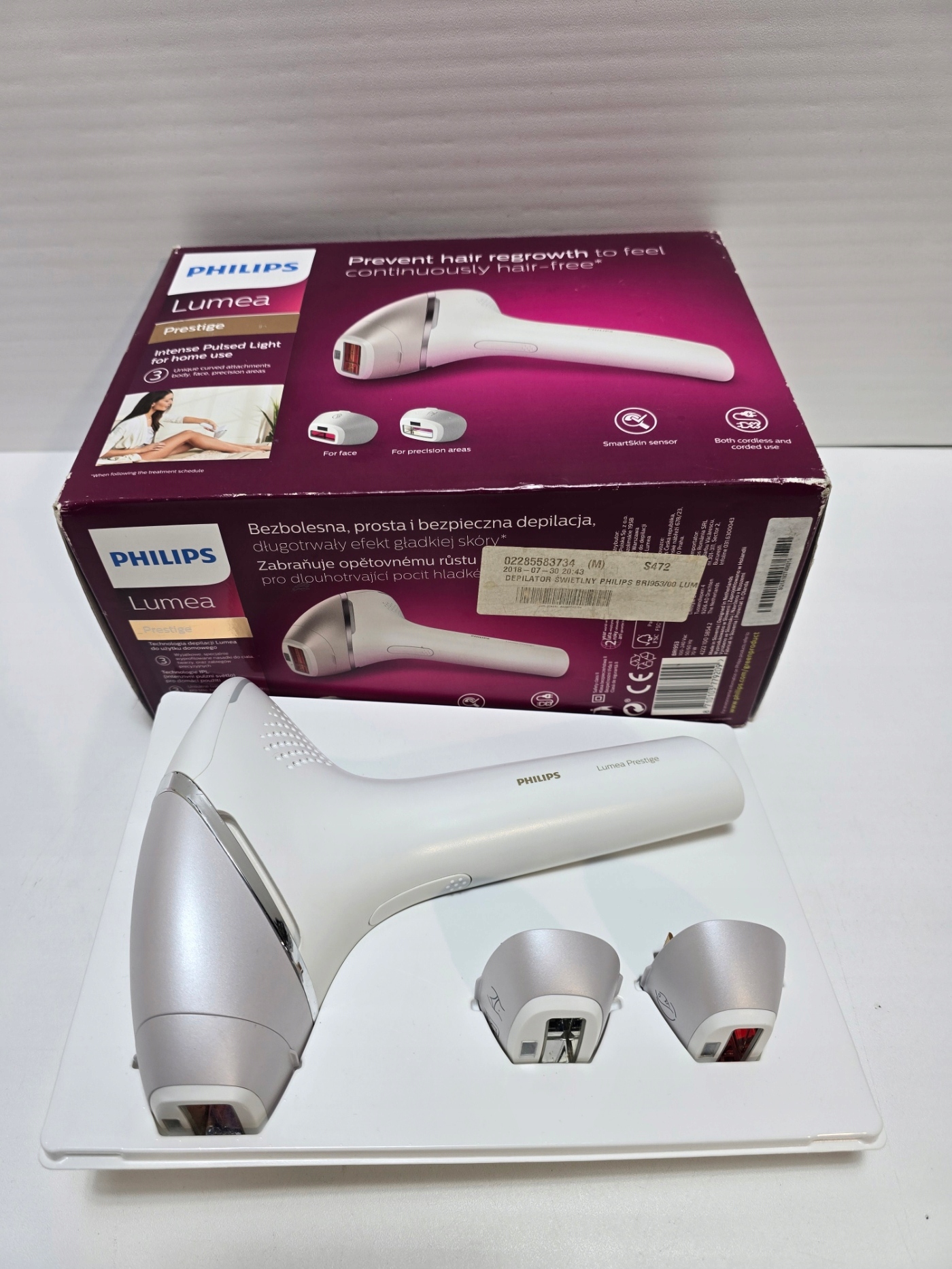 Предметом аукциона является престиж Epilator Philips Lumea, очень мало используется, очень хорошее состояние, видимое на прикрепленных фотографиях. В наборе 3 лица, тело, для точных областей, зарядного устройства и упаковки.