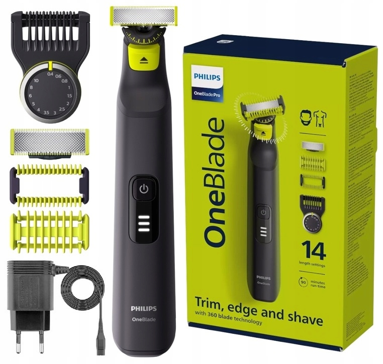 - Предлагаемый набор Philips OneBlade Pro, благодаря использованной в нем технологии, позволяет моделировать и укладывать бороду, а также подстригать и брить волосы, независимо от их длины!
