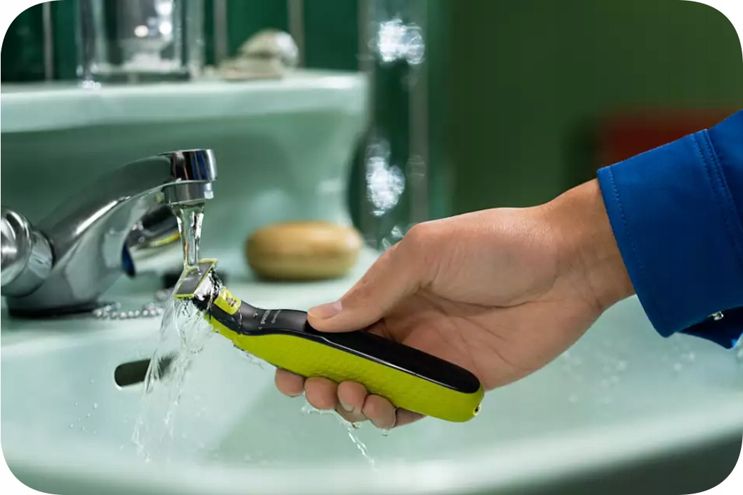 Устройство OneBlade водонепроницаемый (IPX7), поэтому его легко чистить, промывая под проточной водопроводной водой. Вы также можете бриться в душе и использовать пену для бритья или нет — выбор за вами.