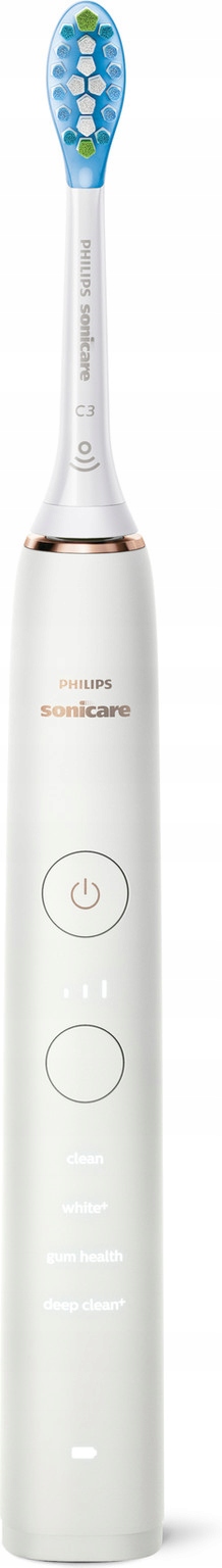 Кончик защиты бляшки C3 премиум -класса была разработана для самой глубокой очистки. Мягкие и гибкие кончики щетинки адаптированы к форме зубов, четыре раза (4x), увеличивая поверхность контакта с зубами и эффективно достигает межзубного пространства. был разработан для самой глубокой очистки. Мягкие и гибкие щетинки адаптируются к форме зубов, увеличивая контактную поверхность с зубами в четыре раза (4x), и эффективно достигает межзубного пространства. Здоровое мытье зубов> щетка DiamondClean 9000 предлагает четыре программы очистки (чистый, белый+, здоровье десен, глубокая чистая+). Чистая программа специализируется на точной повседневной очистке, белой+ в удалении обесцвечивания, здоровье десен при эффективной очистке очень деликатной для десен и глубокой чистой+ в стимулировании глубокой очистки. Кроме того, три уровня интенсивности (высокая, средняя, низкая) позволит вам регулировать кисть еще больше. зарегистрировать это. Если вы нажимаете слишком много, кисть немедленно сообщит вам. Благодаря этому вы улучшите свою технику чистки. Время, так что стоит обратить внимание самостоятельно. Щетка Diamondclean 9000 следует за тем, как долго вы используете наконечник и как часто вы его использовали. Значок в нижней части ручки сообщит вам, когда наступит время обмена новым. Кисть будет работать до 2 недель на одной зарядке