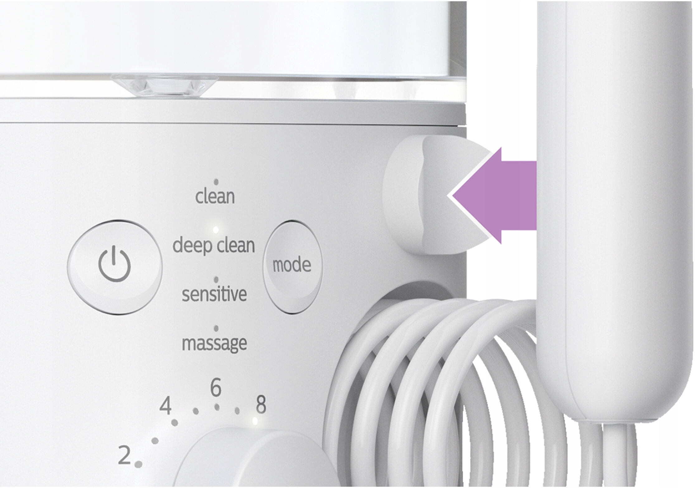 , используемой в новейшем зубном ирригаторе Philips Sonicare HX3911/40 Power Flosser 7000 более точного и более быстрого удаления бляшки из мест, сложно доступа во рту. Уникальный конец сопла имеет форму буквы x, благодаря которой он отделяет поток воды на четыре, что включает в себя большую площадь между зубами и линией десен. Irgation нового стационарного ирригатора Pphilips Sonicary HX3911/40 Power Flosser 7000 является более эффективным и удобным.