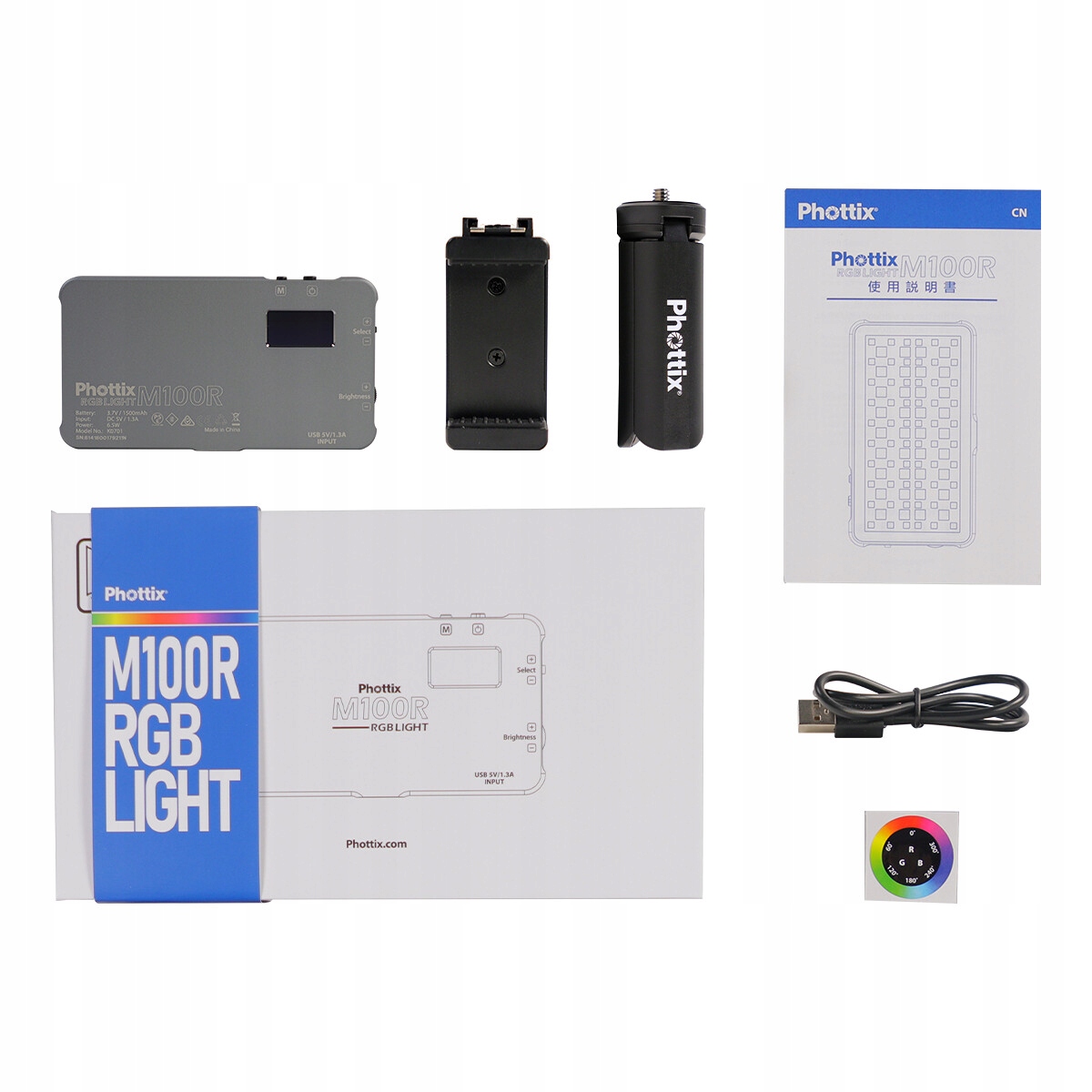 Phottix M100R — сверхкомпактная светодиодная лампа, поддерживающая фото- и видеосъемку на телефон или фотоаппарат. Несмотря на небольшой размер, это эффективный источник света с широким спектром применений: от кинопроизводства, организации интервью до макросъемки, портретной и свадебной фотографии. В нем используется новейшая светодиодная технология без мерцания, а 96 диодов генерируют максимальную мощность света 6,5 Вт. Лампа имеет очень широкий диапазон регулировки баланса белого от 2500 К до 8000 К. Как и все семейство Mobile RGB LED, она отличается высоким качеством света с CRI 96+ и TLCI 98+, что позволяет использовать ее в профессиональных целях. Творческую работу поддерживает пакет из 21 светового эффекта и полная настройка параметров цвета, его оттенков и насыщенности в диапазоне 0-360º. Он оснащен эффективной батареей емкостью 1500 мАч, которая обеспечивает непрерывную работу на полной мощности в течение 55 минут.