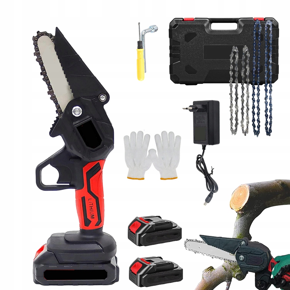 PIŁA ŁAŁCUCHOWA AKUMULATOROWA 4" I 6" DO GAŁĘZI DREWNA MOCNA PIŁA PILARKA