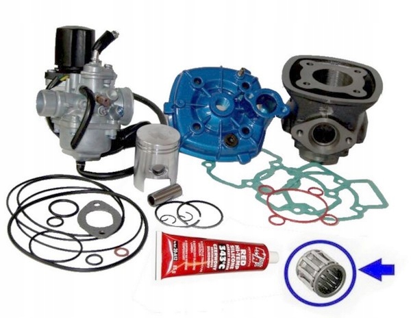 Набор включает в себя: чугунный цилиндр, поршень, кольца, безопасность, булавка,