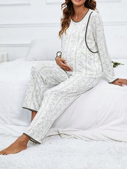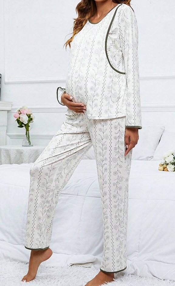 PIŻAMA CIĄŻOWA SPODNIE Z BLUZKĄ BIAŁA XL ŁJA