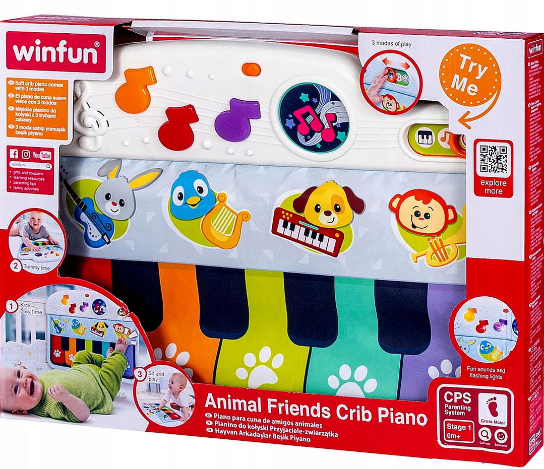 Пианино для кровати, которое привлечет внимание ребенка и обеспечит длительное развлечение. Пианино безопасное, мягкое и издает звуки. Малыш может играть в кроватке сидя, нажимая разноцветные ноты, или лёжа, нажимая ножками. Он также может играть на пианино вне своей кровати.