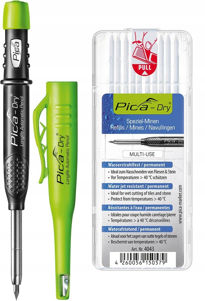 Маркер для глубоких отверстий Pica-Dry® + белые водонепроницаемые сменные вставки Pica-Dry®