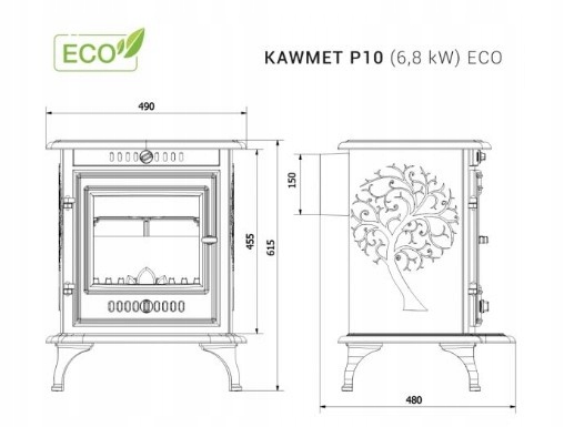 ПІЧ, ЧАВУННИЙ КАМІН НА ДРОВАХ, KAWMET P10 (6,8 кВт) ЕКО-ДИЗАЙН ЯКІСТЬ