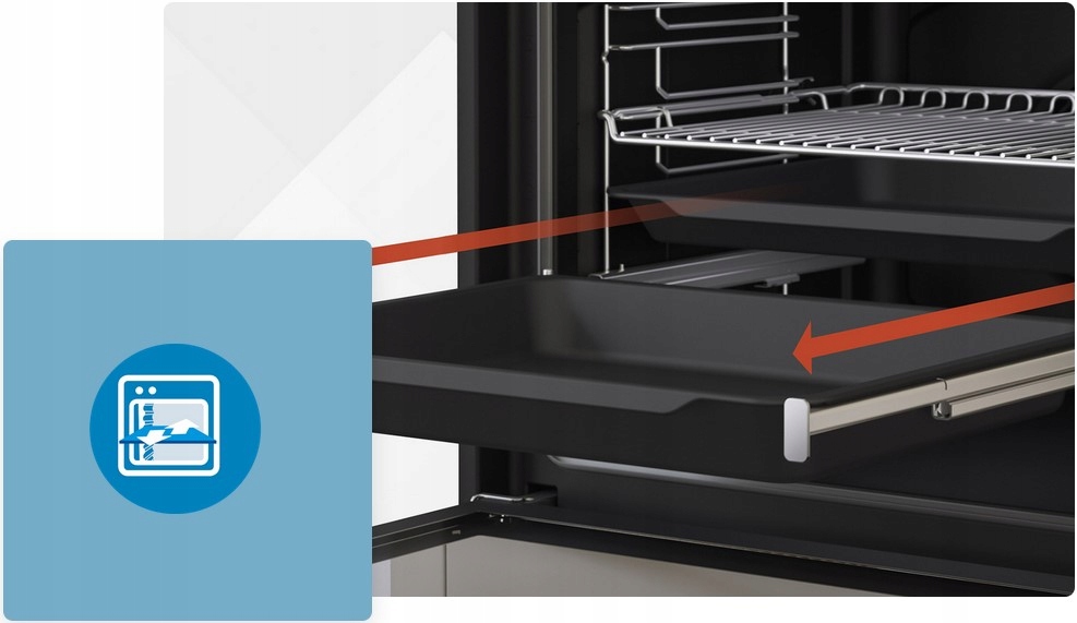 Благодаря телескопическим направляющим вы легко и безопасно выдвинете противень с горячим блюдом. , избегая случайных ожогов.