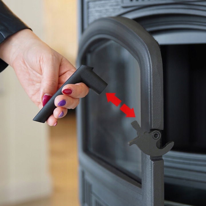 Система холодных ручек позволяет снимать его при топке печи. Благодаря этому он не нагревается и можно легко добавить дров