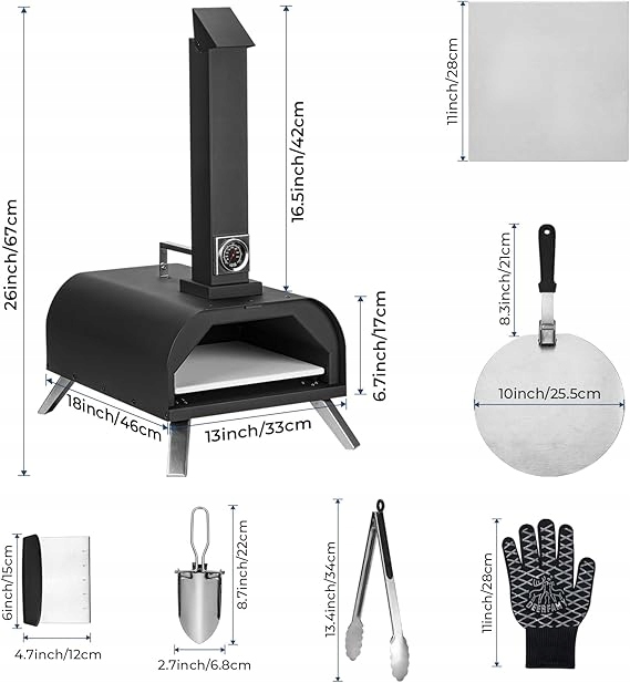 - 【Наслаждайтесь весельем】Эта прочная печь для пиццы с металлическим корпусом весом 11 кг идеально подходит для транспортировки. Просто заполните ее топливом (пеллетами или древесной стружкой) - и вы готовы начать работу со своей семьей и друзьями!