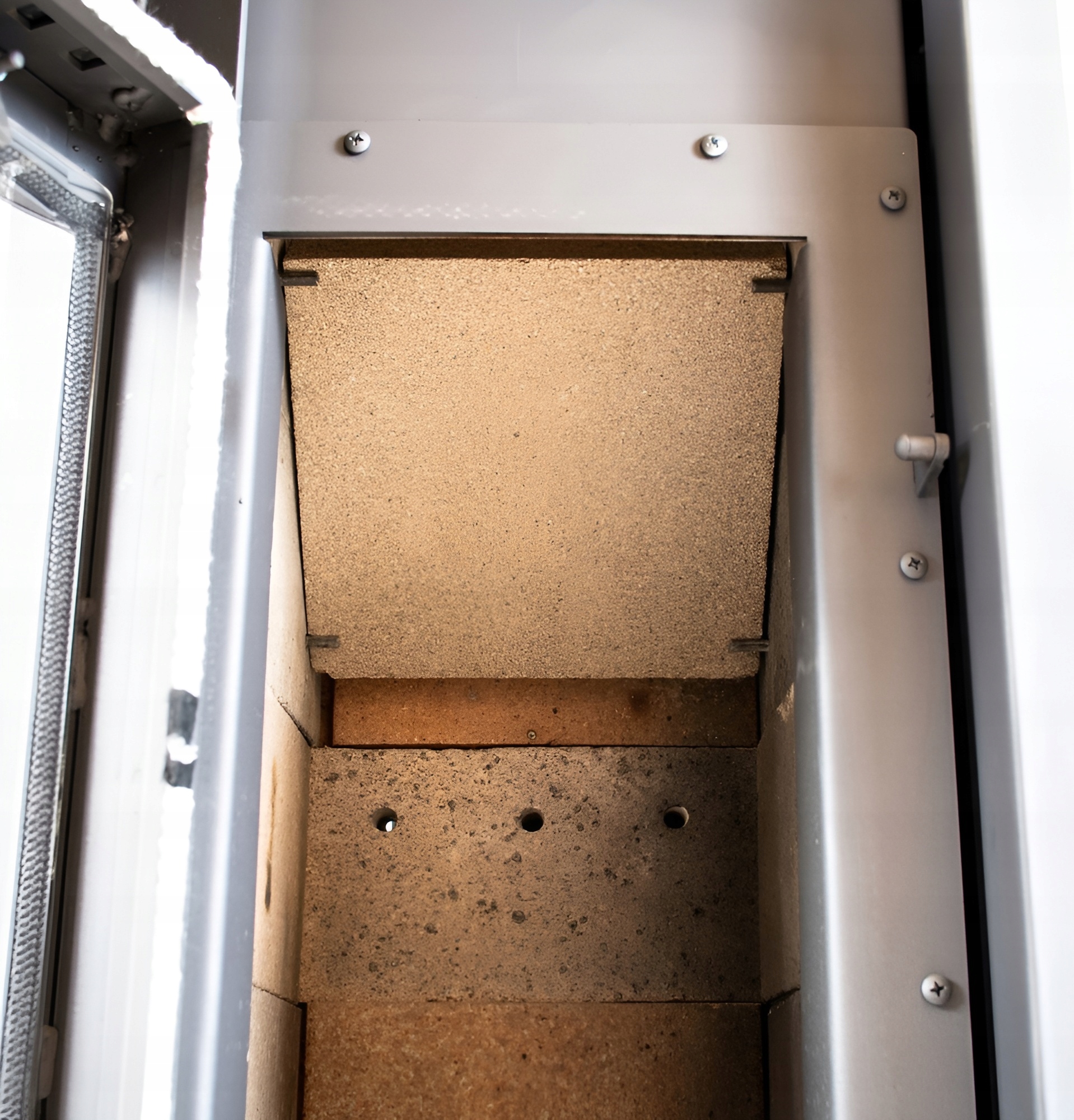 Печь ARIEL имеет встроенный дефлектор, расположенный на задней стенке топки, непосредственно перед выходом дымовых газов.