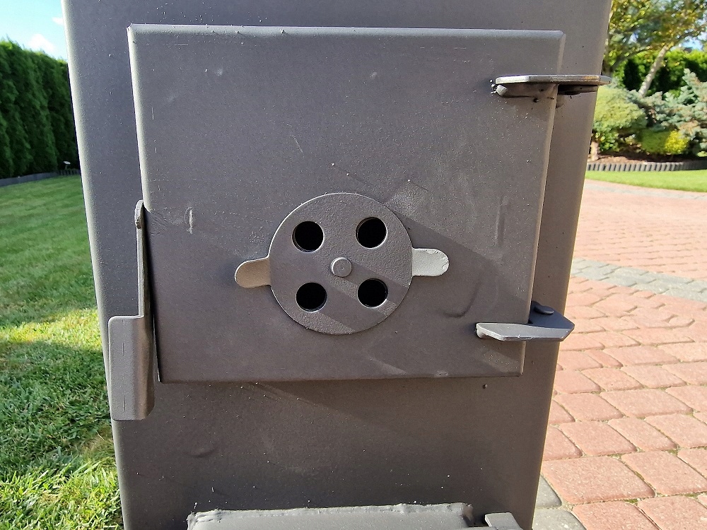 >В нижней части камеры сгорания расположена чугунная решетка для сжигания топлива.Стены печи до высоты загрузочной дверцы облицованы шамотным кирпичом.Зола от сгоревшего топлива попадает в зольник, расположенный под решеткой. Сзади печи установлена заслонка, подающая первичный воздух под колосниковую решетку и в топку.Сверху закрывается колпаком.