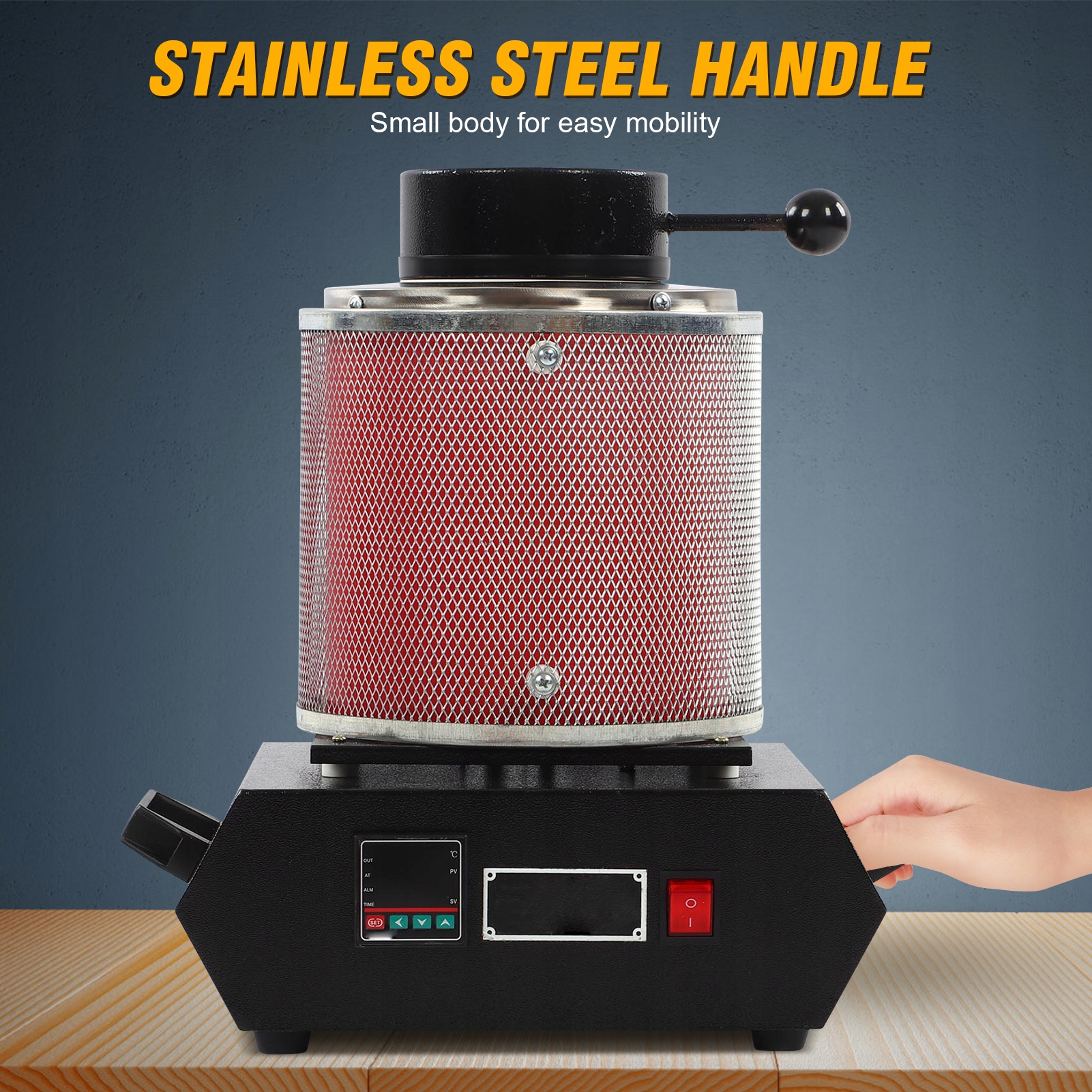 - В плавильной печи используется увеличенное основание, чтобы сделать центр тяжести более устойчивым, а также добавлены две ручки для облегчения переноски.
