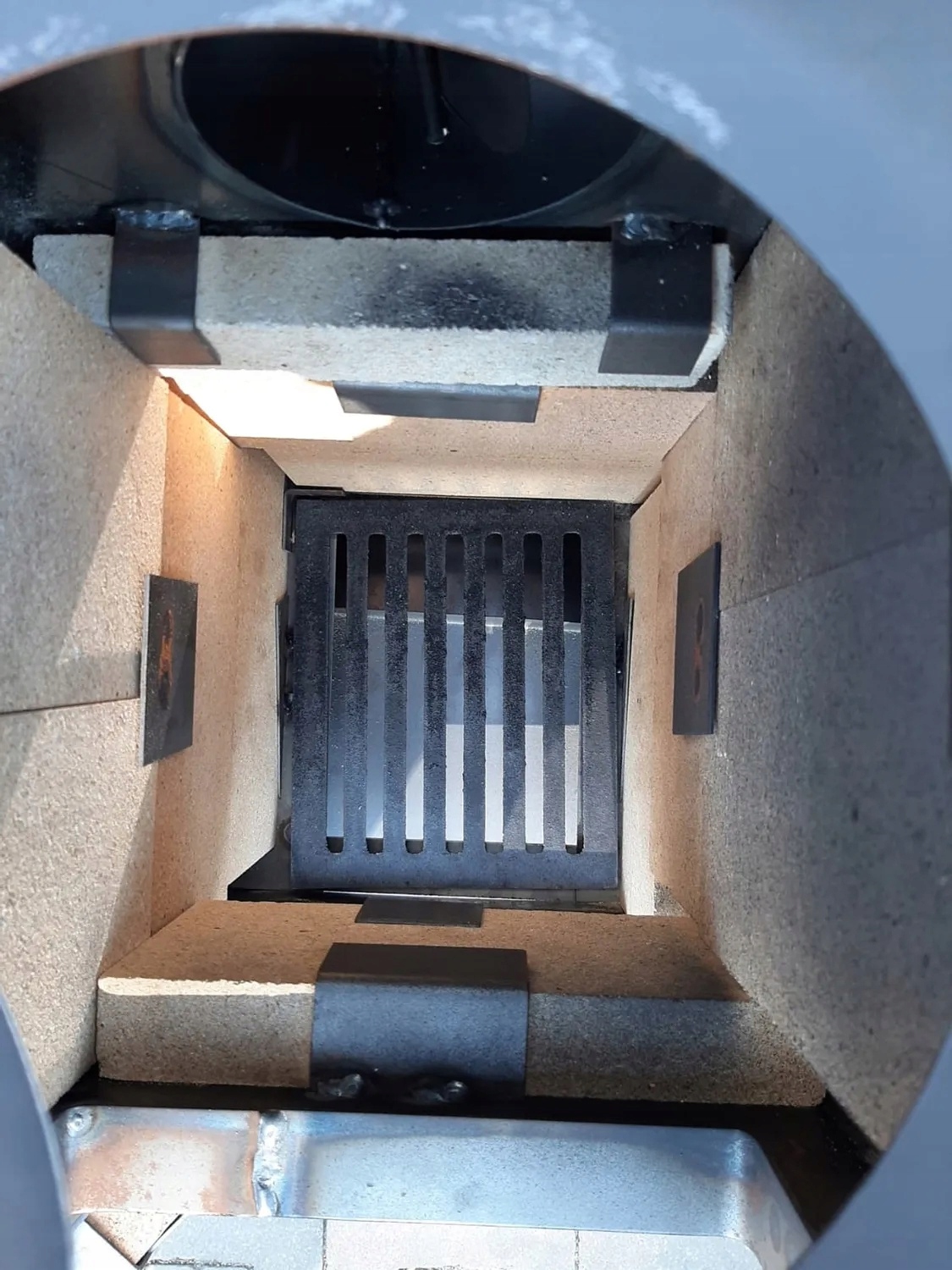 В печи 12 шамотных кирпичей. Дополнительно на выходе выхлопных газов (в нижней дверце) кладут шамотный кирпич – благодаря этому печь надежно защищена.