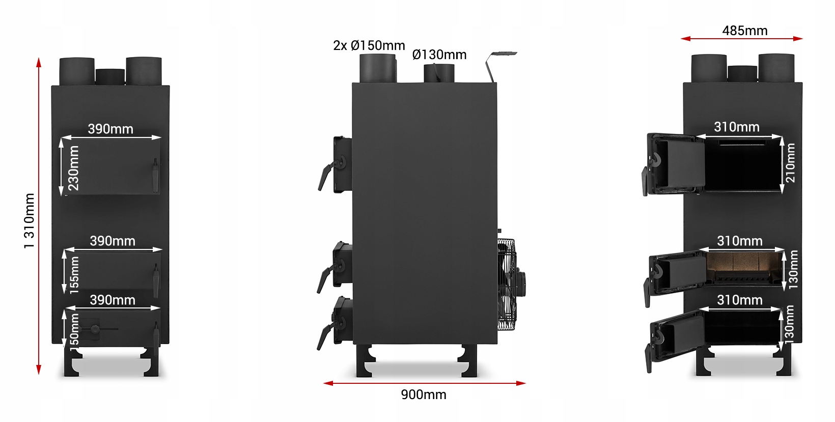 - Внешние размеры: общая ширина: 485 мм x общая глубина: 900 мм x общая высота: 1310 мм
