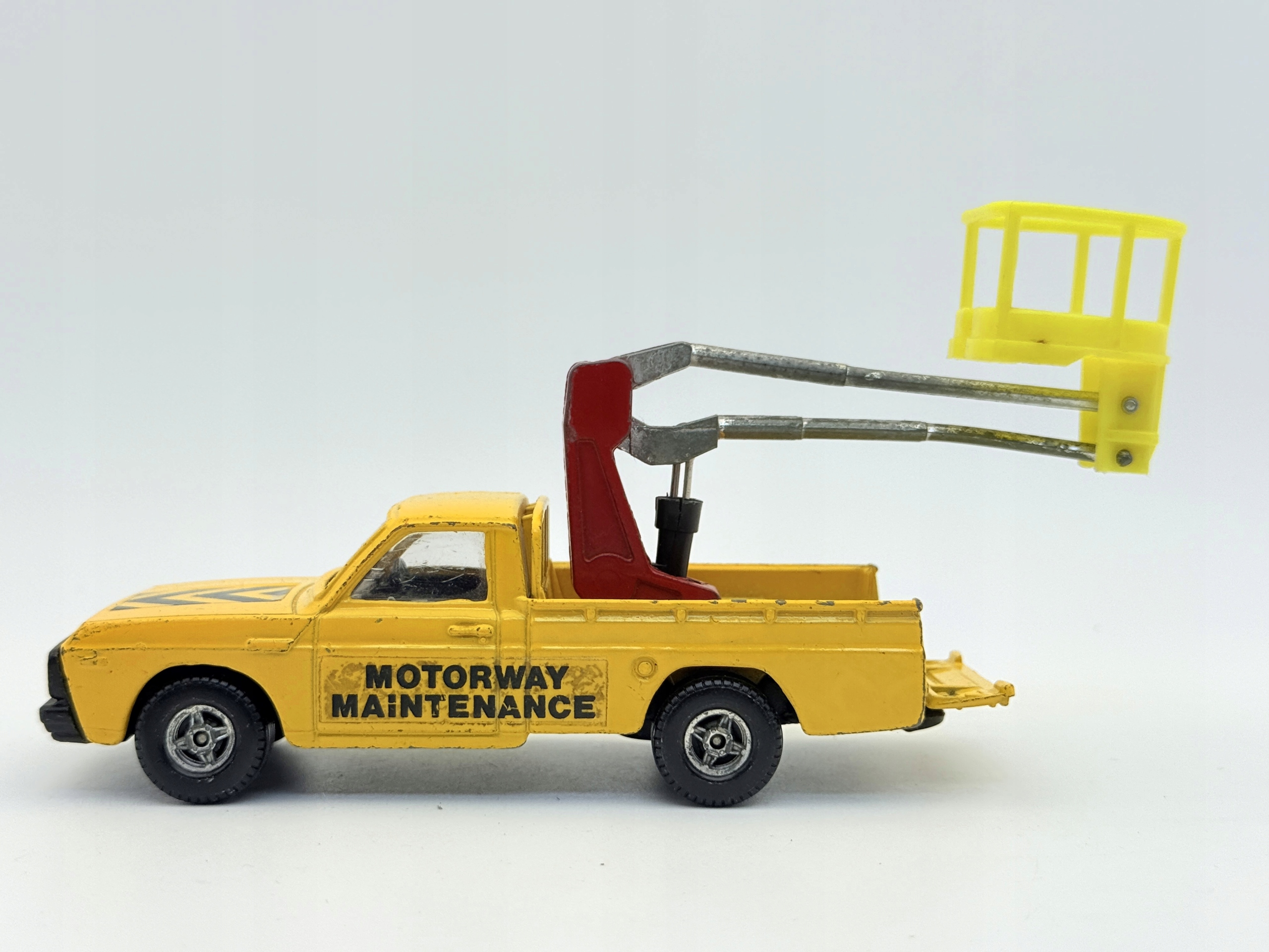 Ресорак Mazda B1600 Пикап является прекрасным примером классической модели 70 -х годов, созданной известным брендом Corgi. Модель изготовлена из металла и пластика, что обеспечивает долговечность и прочность структуры. Его желтое тело с черными и красными элементами привлекает внимание, а отпечатки «обслуживания автомагистрали» дают ему подлинность. Подъем корзины - это функциональная добавка, которая повышает привлекательность модели. Хотя весна имеет некоторые признаки использования, он все еще сохраняет свое очарование и является ценным элементом каждой коллекции. Идеально подходит для любителей классических коммерческих транспортных средств и поклонников Corgi.