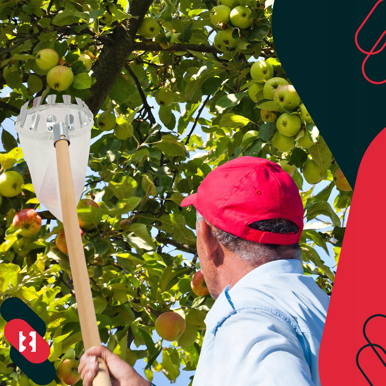 Собиратель фруктов может хранить в мешке сочные яблоки, но с его помощью можно успешно собирать и сливы.