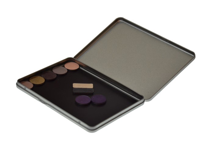 Серебряная магнитная палетка предназначена для хранения косметики. Идеально подходит для хранения теней, пудры или румян в металлическом молдинге.