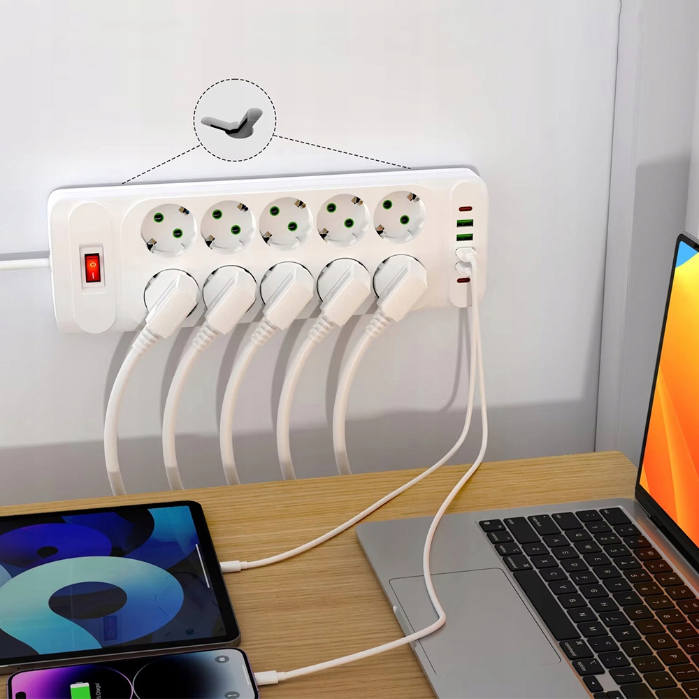 Организуйте зарядку и сэкономьте место! Этот многофункциональный удлинитель представляет собой практичное решение для дома и офиса, которое позволит организовать кабели и обеспечить эффективное питание многих устройств одновременно.