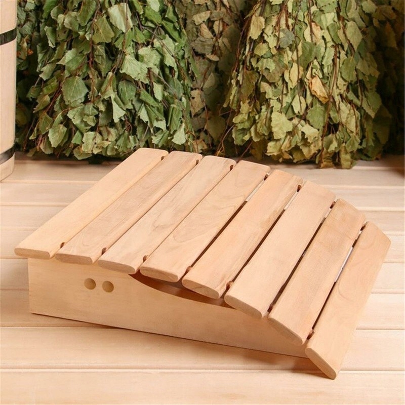 Для обеспечения удобного положения головы необходимы деревянные подголовники, которые обычно изготавливаются из таких пород древесины, которые имеют низкую теплопроводность, чтобы посетители сауны не обжигались.