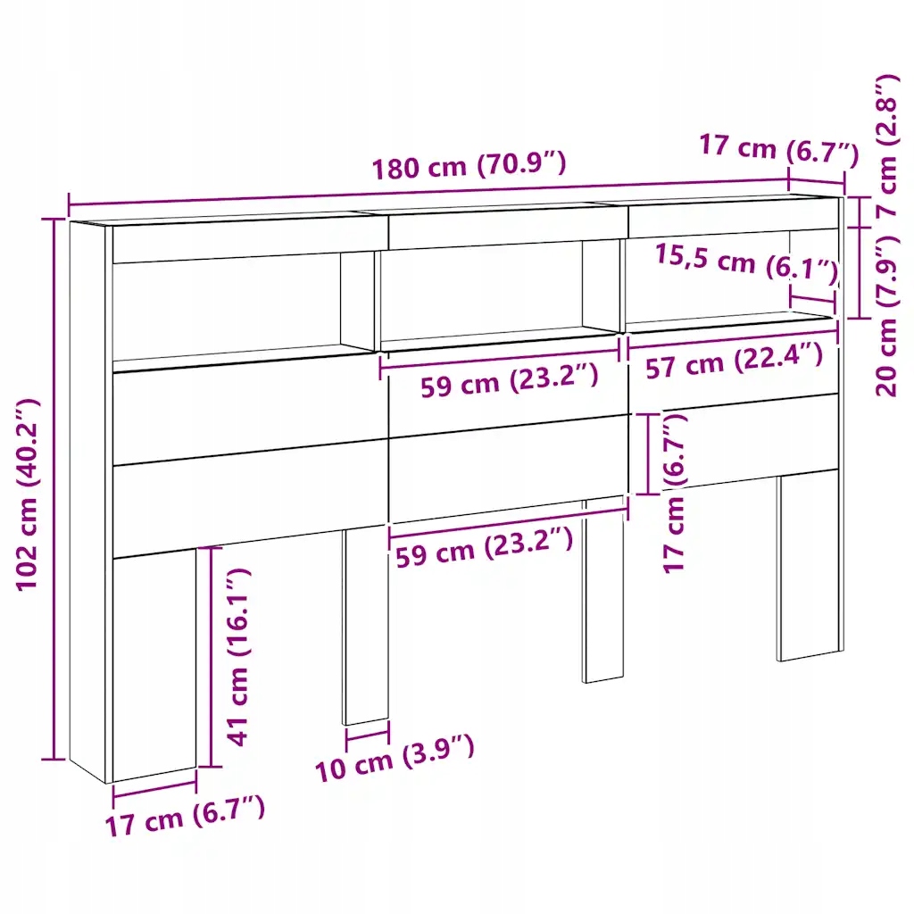 Изголовье с полками и светодиодной подсветкой, дуб черный, 180x17x102 см