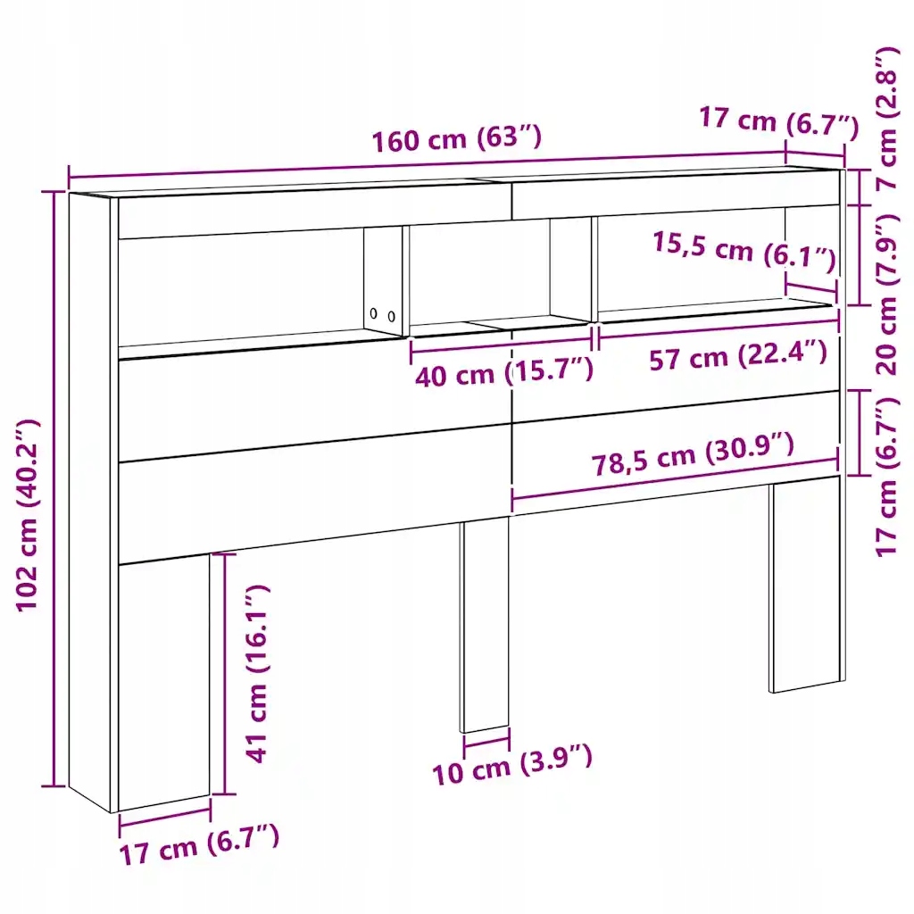 Изголовье с полками и светодиодной подсветкой, состаренное дерево, 160x17x102 см