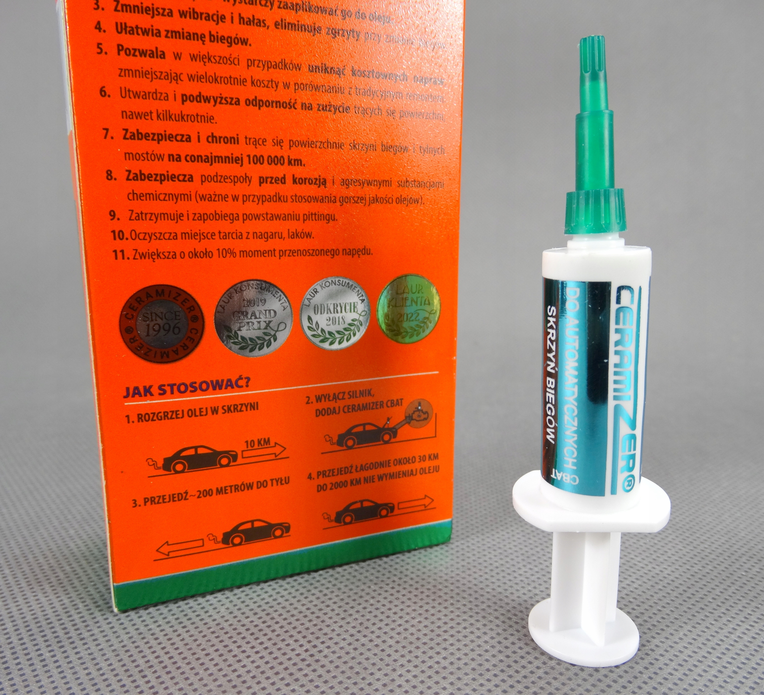 Присадка к трансмиссионному маслу действует за счет создания специального металлокерамического слоя. Этот слой защищает детали коробки передач, долговечен и имеет низкий коэффициент трения. Он ниже 0,02, поэтому мы имеем дело с коэффициентом в 10 раз меньшим, чем при нормальном контакте двух стальных деталей. Все это значит, что Керамизер хорошо защищает детали коробки передач на расстоянии до 100 000 км.