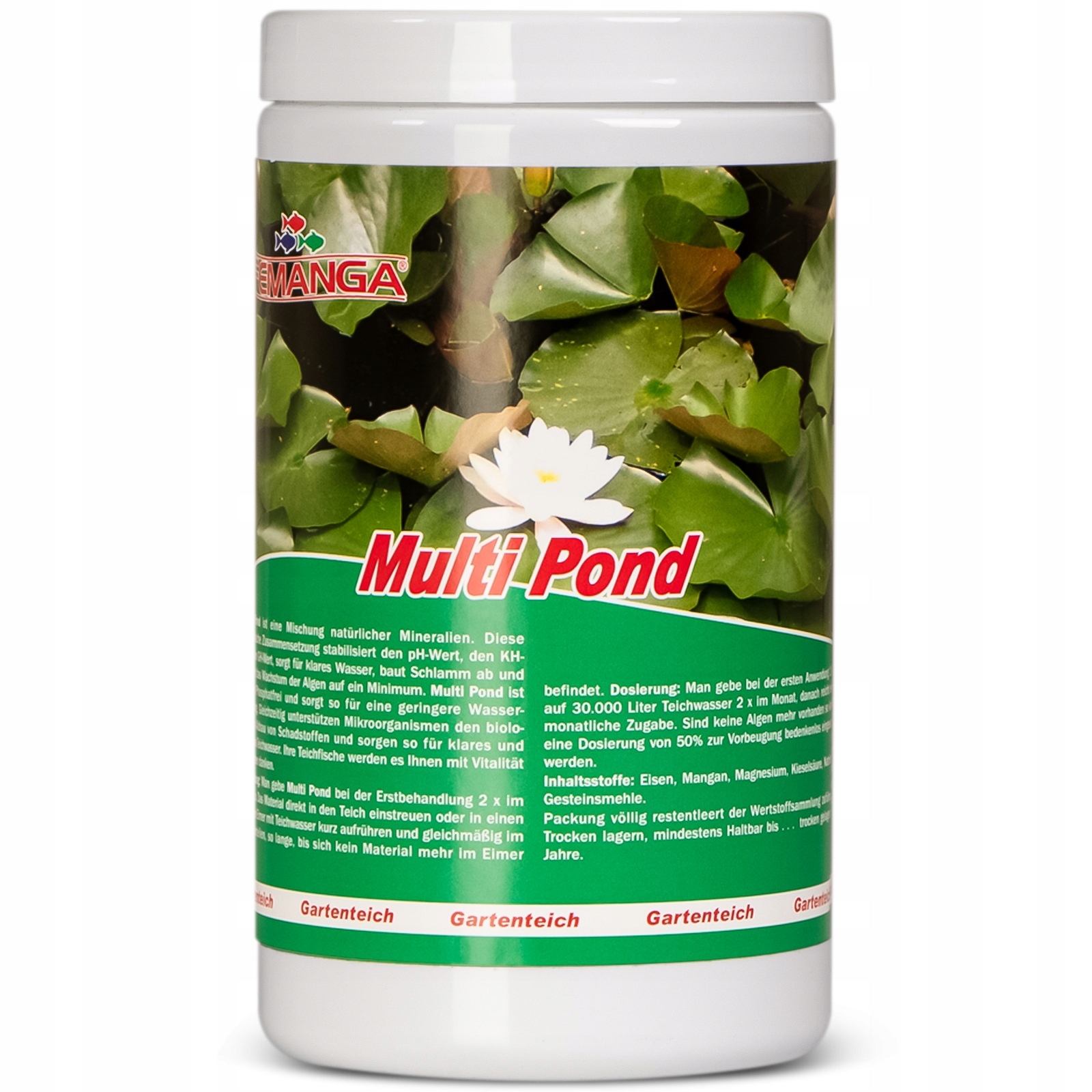 Multi Pond - это смесь природных минералов. Этот минеральный состав стабилизирует значение pH, значение KH, значение GH, обеспечивает чистую воду, распространяет мул и сводит к минимуму рост водорослей. Multi Pond полностью свободен от фосфата, что способствует меньшему количеству воды. В то же время микроорганизмы поддерживают биологическое распределение загрязнения, обеспечивая таким образом чистую и здоровую воду в суставах . Ваша рыба в пруду окупится жизненной силой и цветами.
