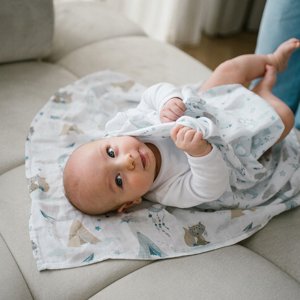 Бамбуковые подгузники могут превратиться в пеленку, легкое одеяло, простыню, полотенце и даже в любимые обнимашки для сна.
