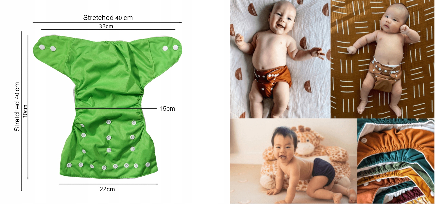 Тканевые подгузники регулируемого размера которые подходят так же хорошо, как и одноразовые подгузники, и стоят намного дешевле. Если он грязный, просто бросьте его в стиральную машину и промойте подгузник.
