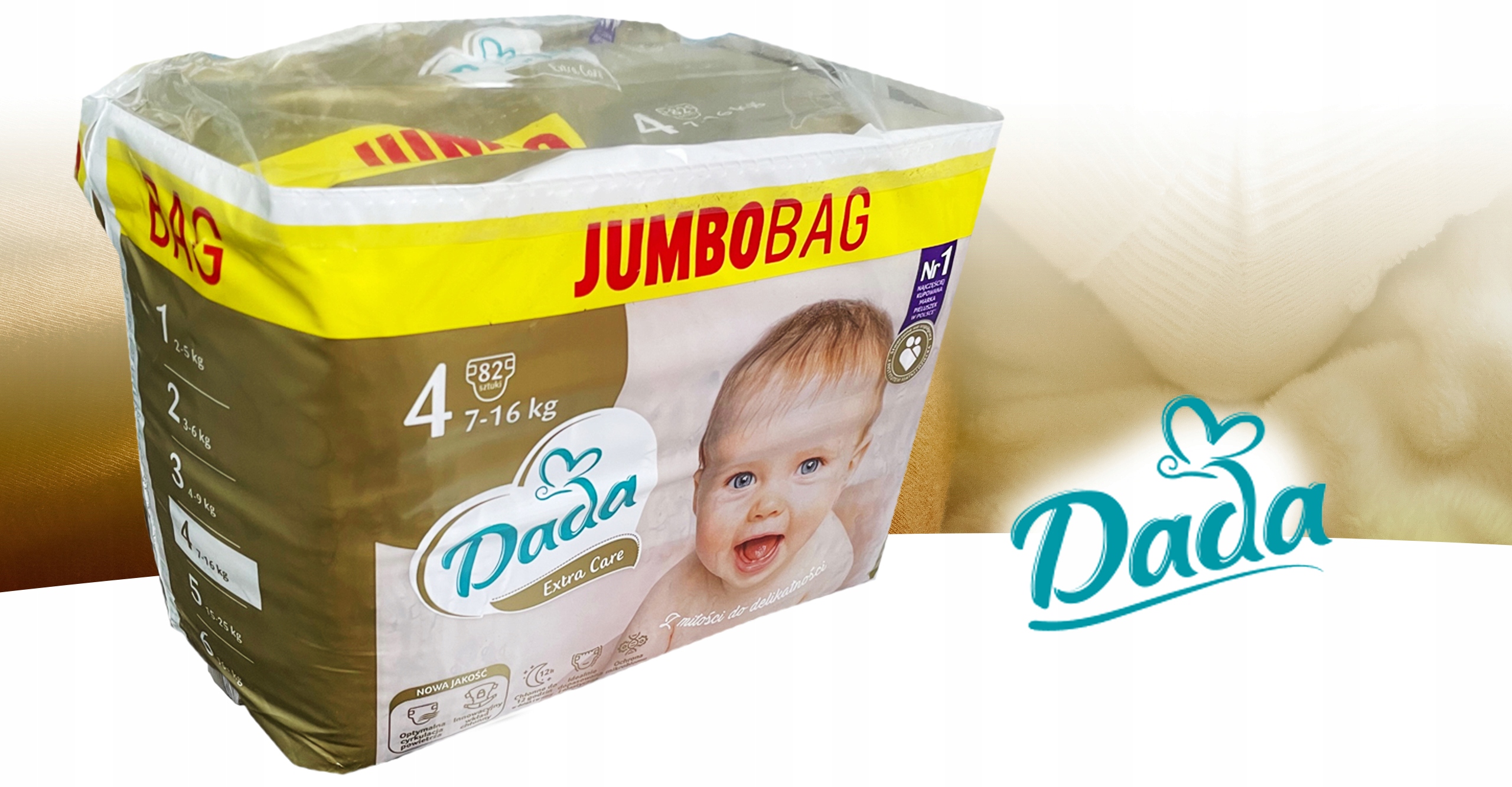 Увеличенная упаковка для вашего малыша! Большая упаковка ваших любимых подгузников Dada Extra Care 4 подарит вам больше спокойствия! Подгузники DADA EXTRA CARE 4 — единственные подгузники в Польше, созданные в сотрудничестве с Институтом матери и ребенка.