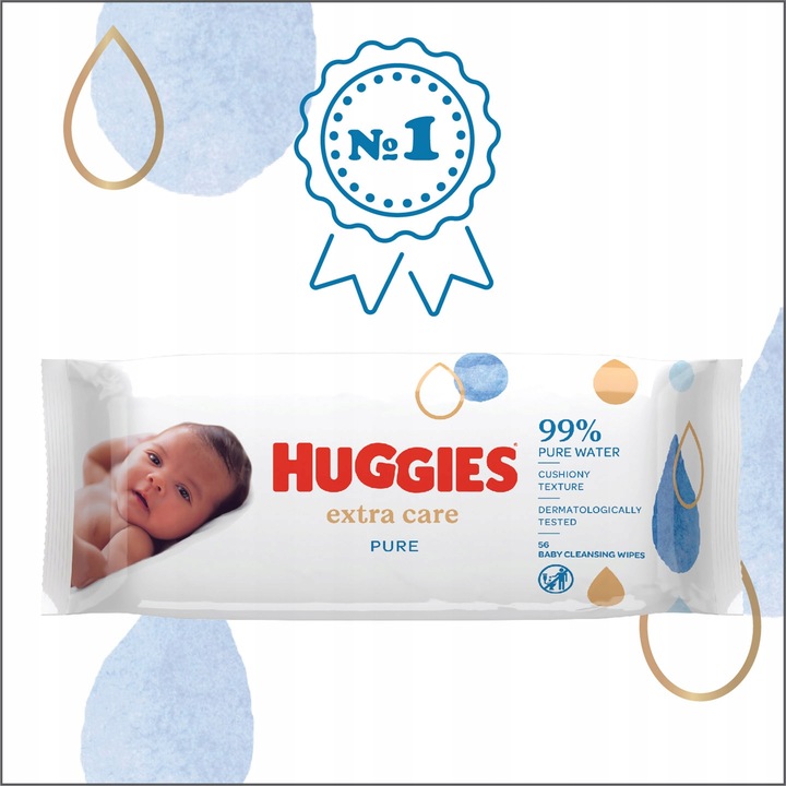 Влажные салфетки Huggies Pure гипоаллергенны и подходят для нежной кожи новорожденного благодаря сбалансированному pH и отсутствию отдушек и спирта. Никакого липкого эффекта.