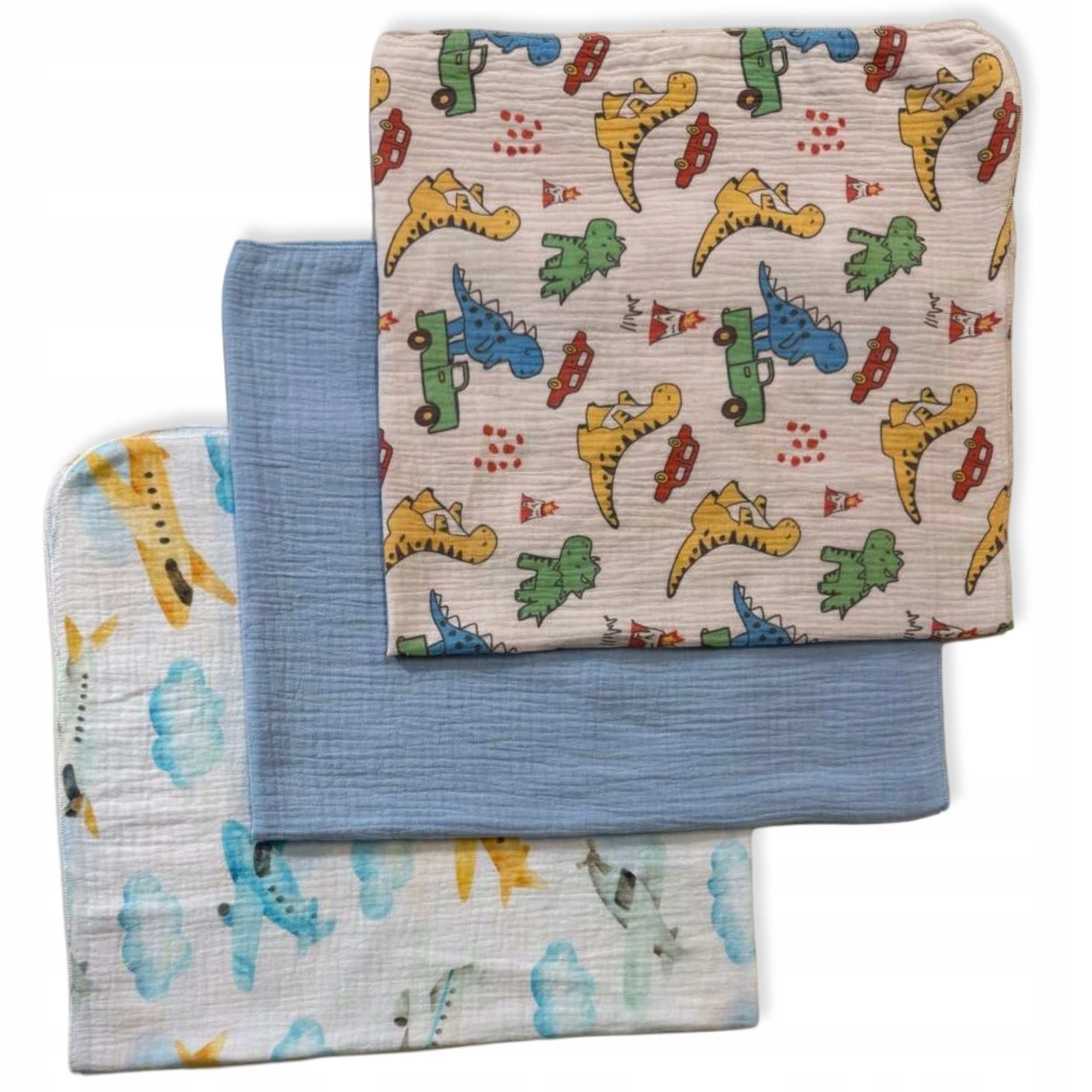3 КОМПЛЕКТА МИНИ-ПЕГЛЕННИКОВ из муслина размером 38х38 см CLOUD DINO BLUE