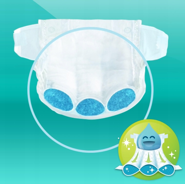 - Дополнительный слой абсорбента помогает равномерно распределять влагу внутри подгузника и защищать ее от кожи ребенка.