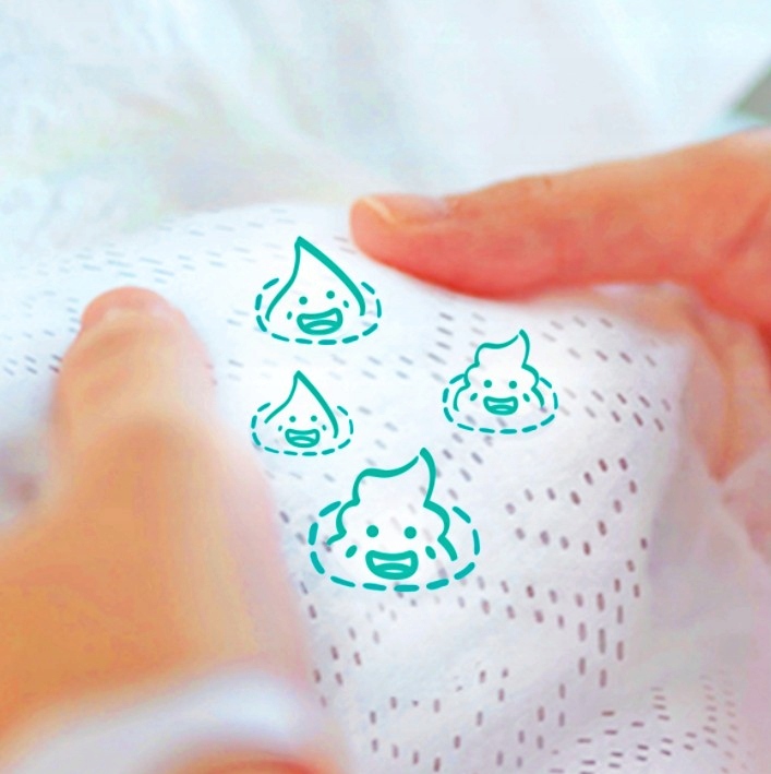 1) Уникальный слой DERMACOMFORT с впитывающими каналами, которые мгновенно отводят влагу и содержимое подгузника от кожи ребенка и удерживают их внутри подгузника.