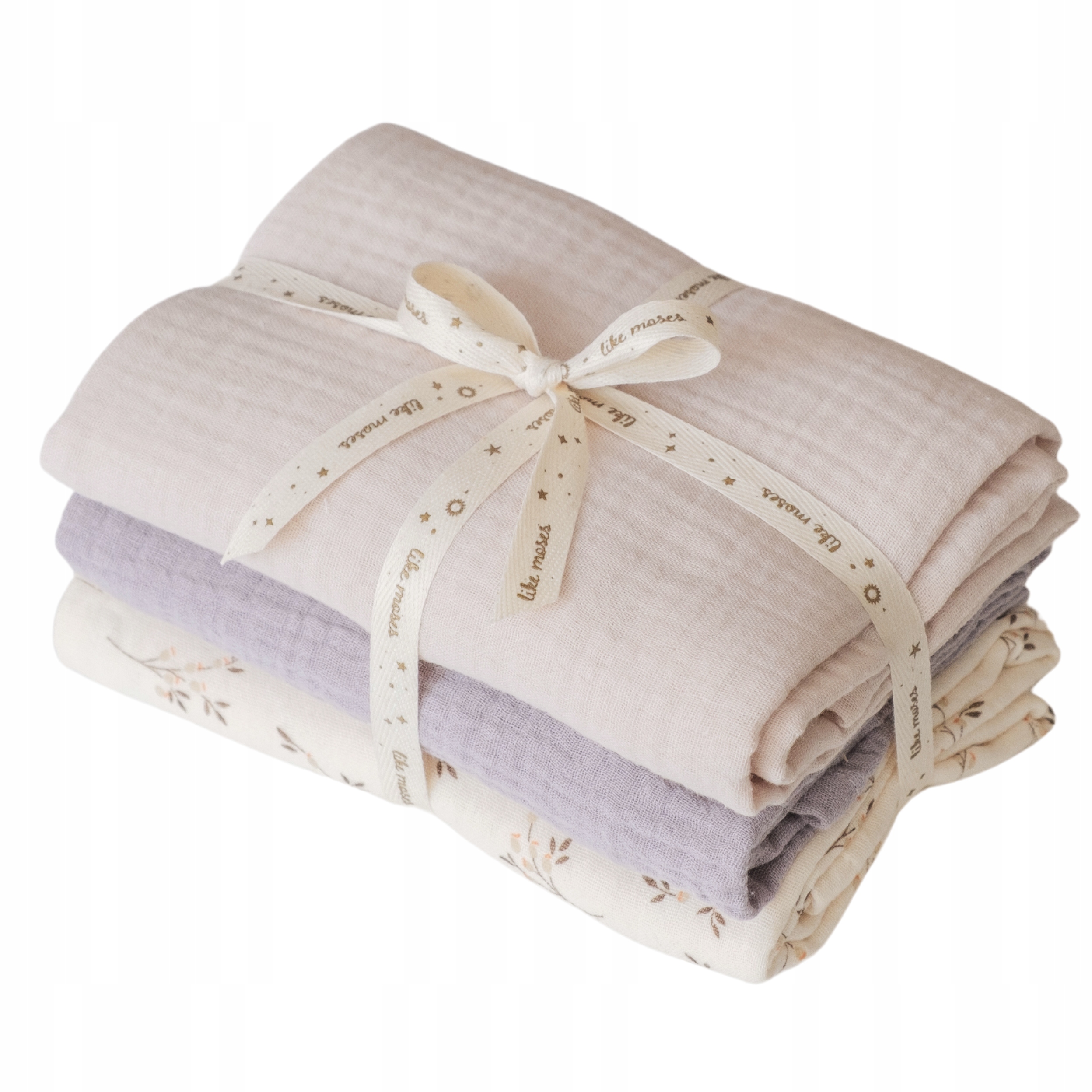 подгузники - один из основных элементов Layette. Музлиновая ткань чрезвычайно нежна для кожи. Ткань имеет сертификат Oeko-Tex 100 и богов использоваться во время кормления, купания, ванн, путешествий, прогулок, ежедневного ухода за младенцами в качестве защиты от грязи, осторожное покрытие в общественные места. В теплые дни они будут работать в качестве легкого укрытия во время сна или солнечного покрытия