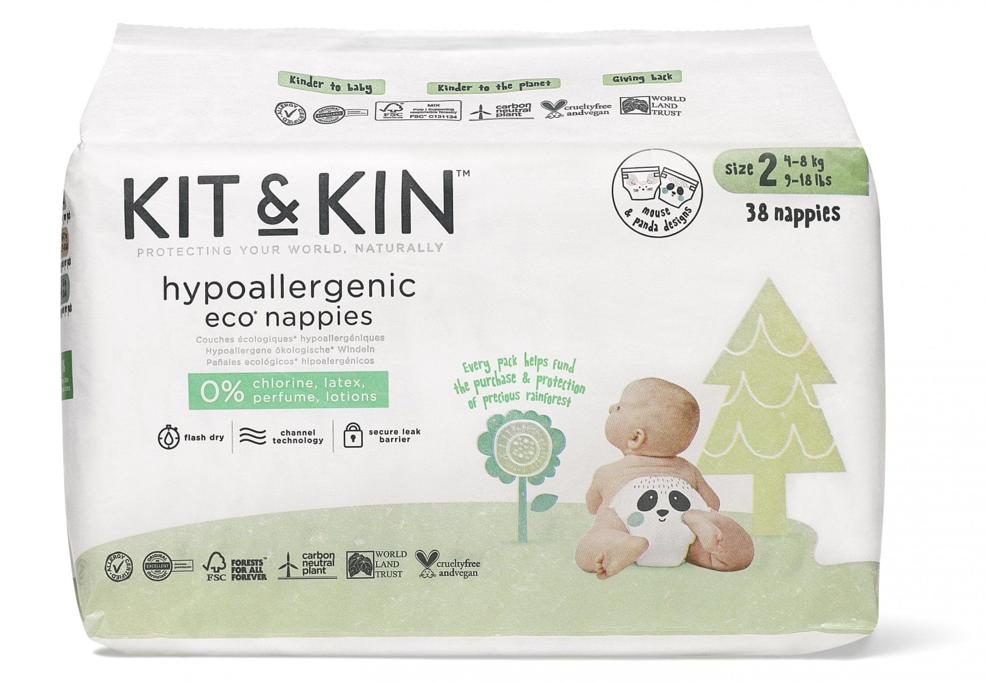 Наружный слой: растительные материалы из устойчивых культур и водонепроницаемый полиэтилентный слой (полиэтилен). Внутренний слой: полипропилен (полипропилен / PLA), органическое химическое соединение. Абсорбирующая вставка: черный хлор овощной мякоть. Безопасность «оборки»: полипропилен (полипропилен), органическое химическое соединение. Гибкая застежка: полиуретан. Они не содержат потенциально аллергенных веществ, таких как латекс, фталаты. Бренд Kit & Kin является членом PETA (люди для этического обращения с животными, польские люди для этического обращения с животными) и Всемирного земельного фонда - благотворительной организации, которая собирает средства для защиты лесов Африки, Азии, Центральной и Южной Америки.